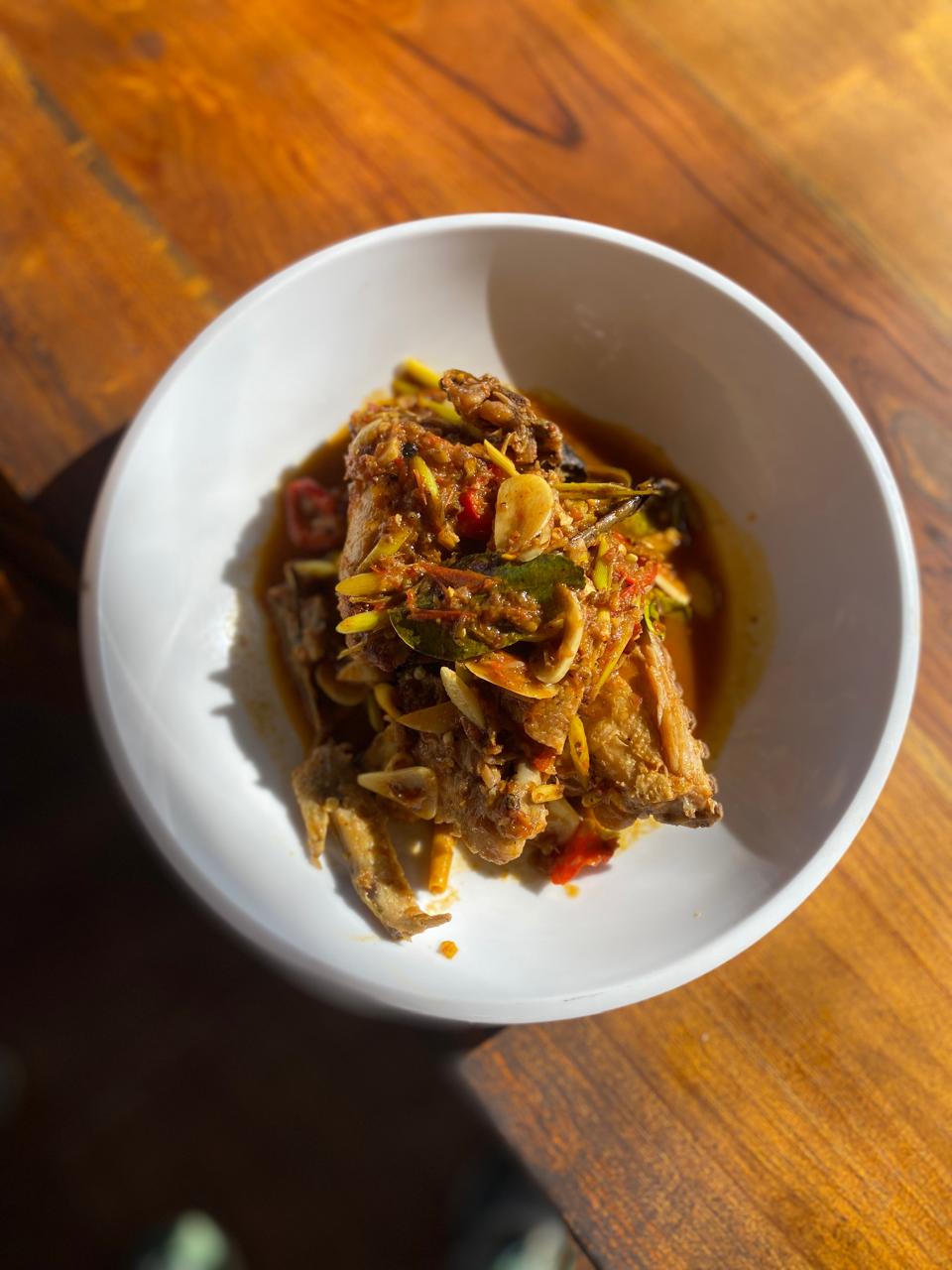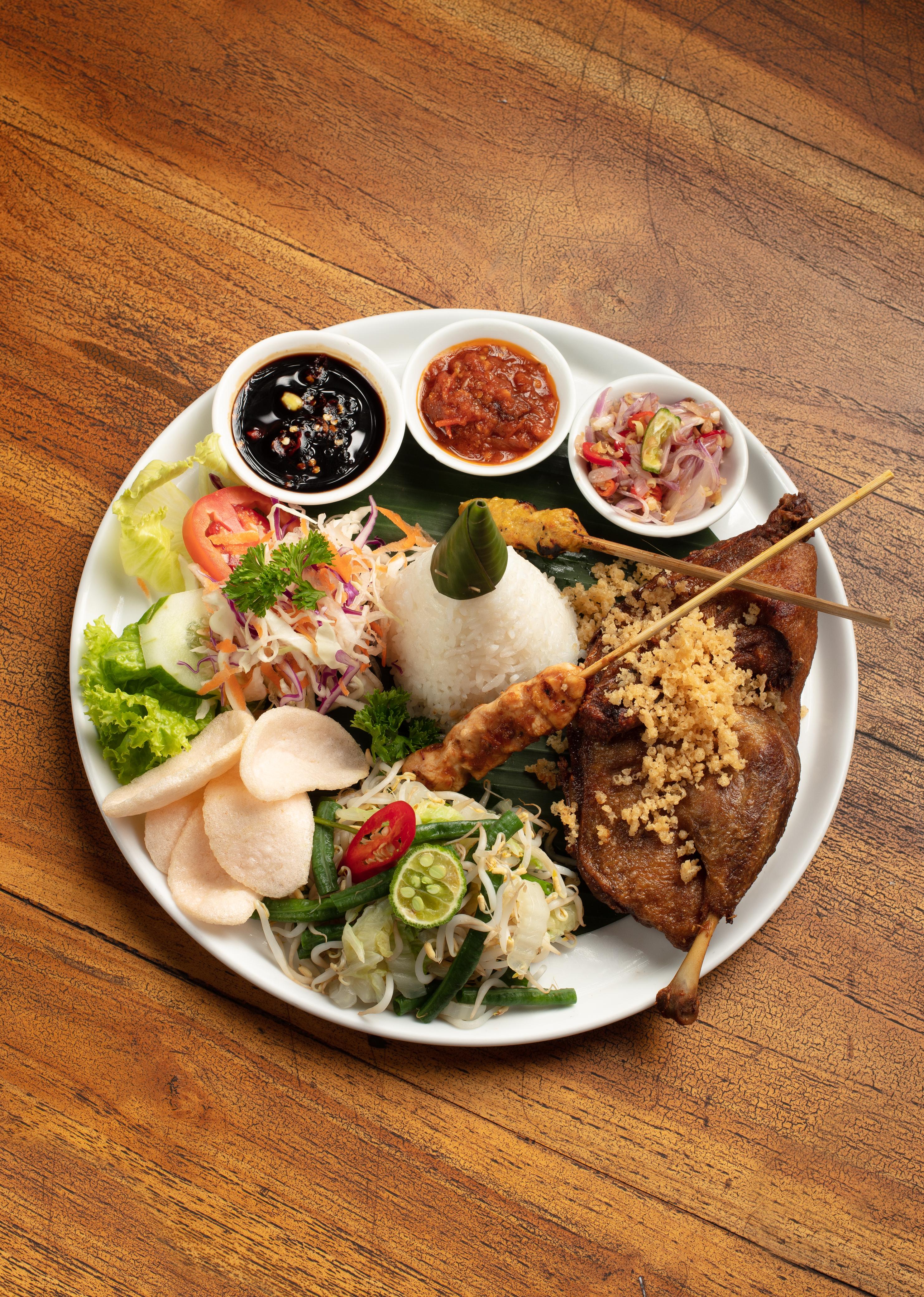 Served with rice, sambal matah, creekers, balinese urab, sweet soya sauce and chili
